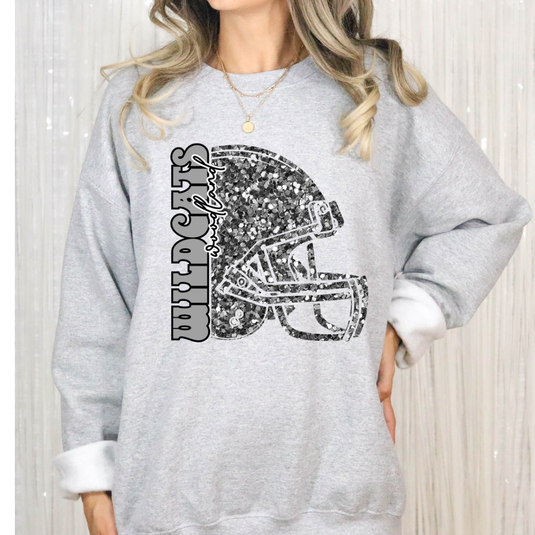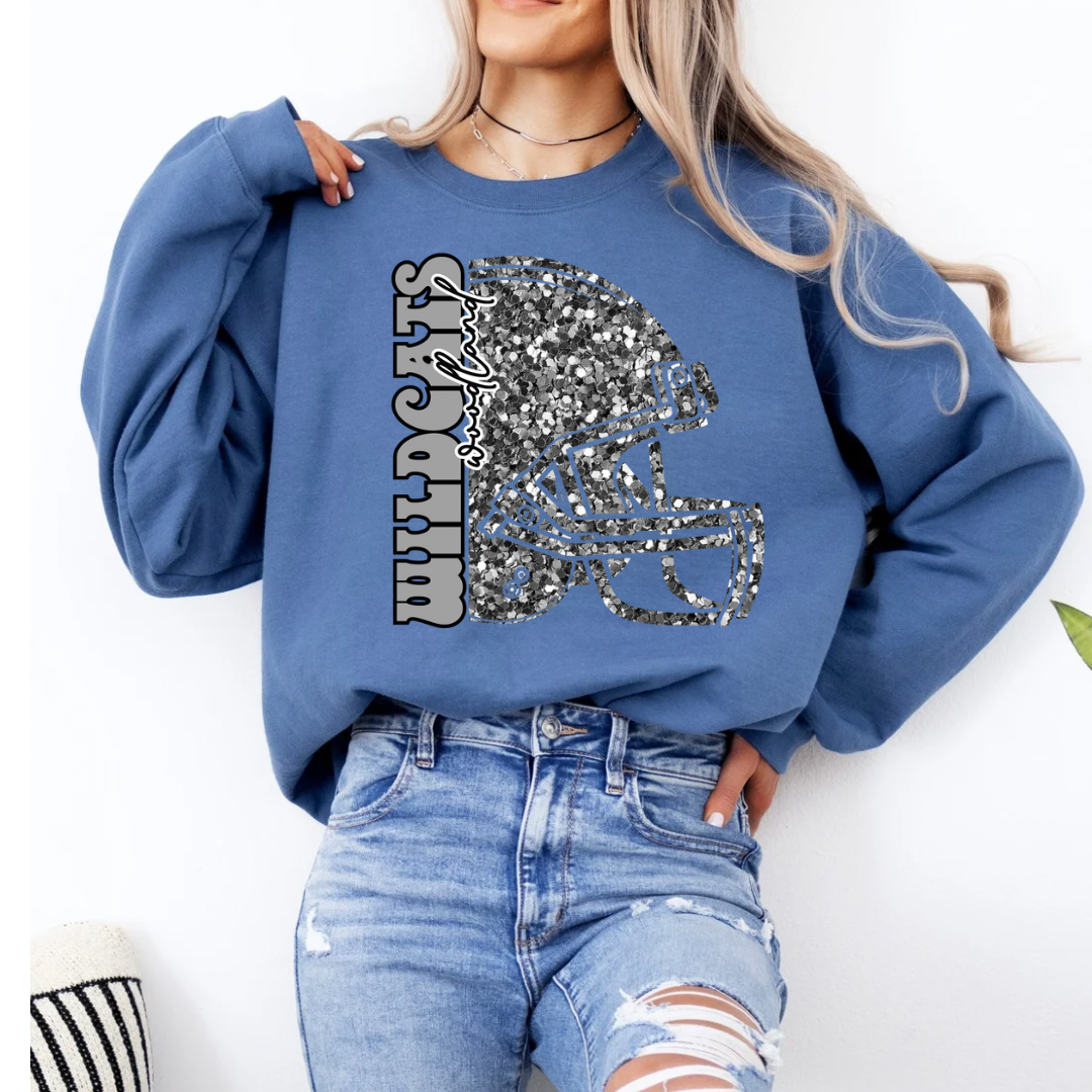 Faux glitter helmet pressed on a Comfort Colors or Gildan sweatshirt!