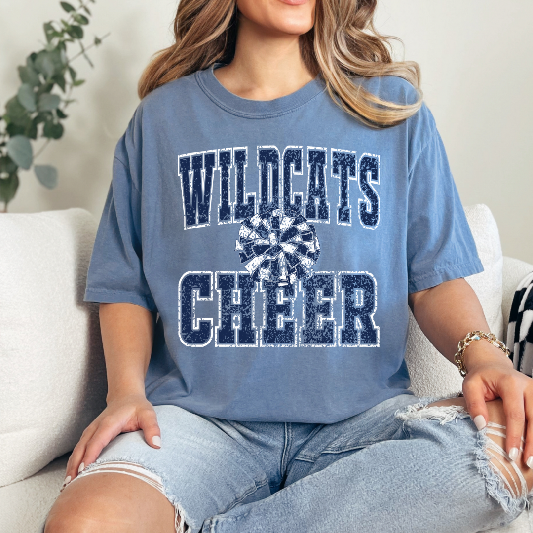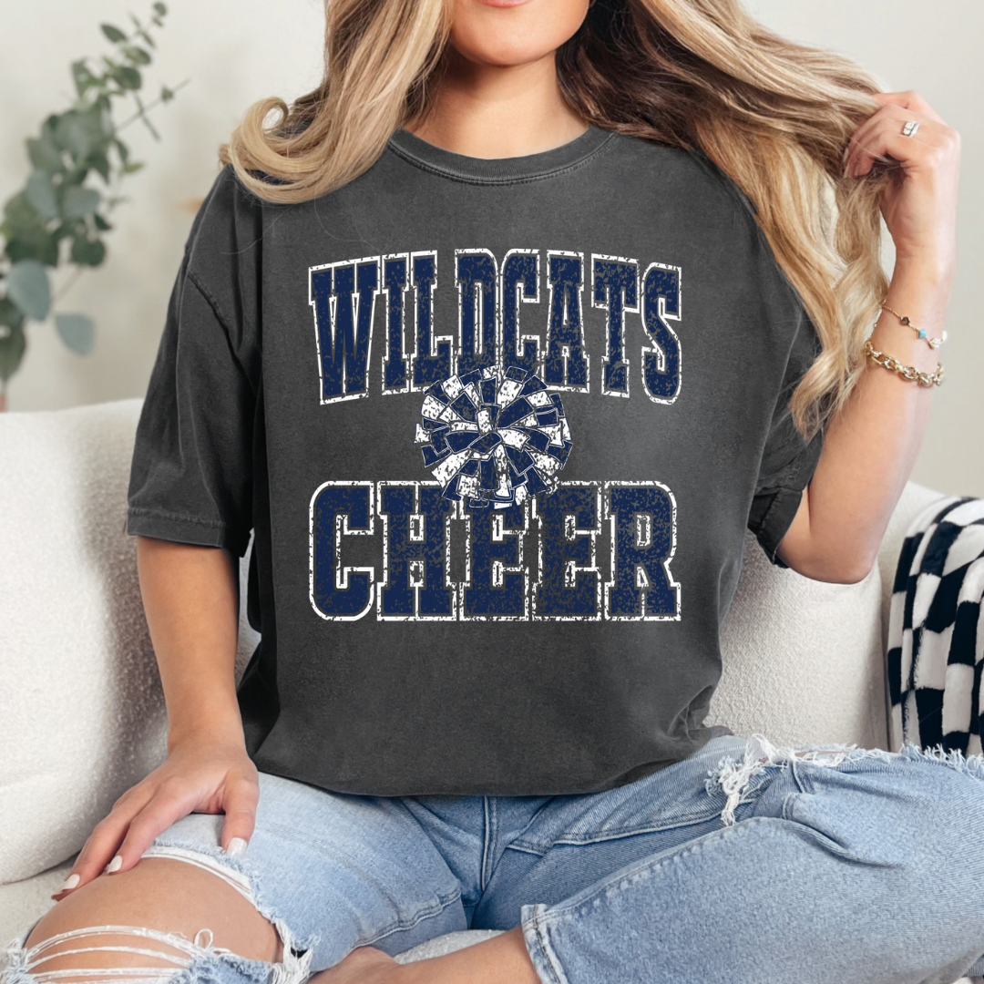 Show your cheerleader support with this Wildcats design! Pressed on your choice of Comfort Colors tee